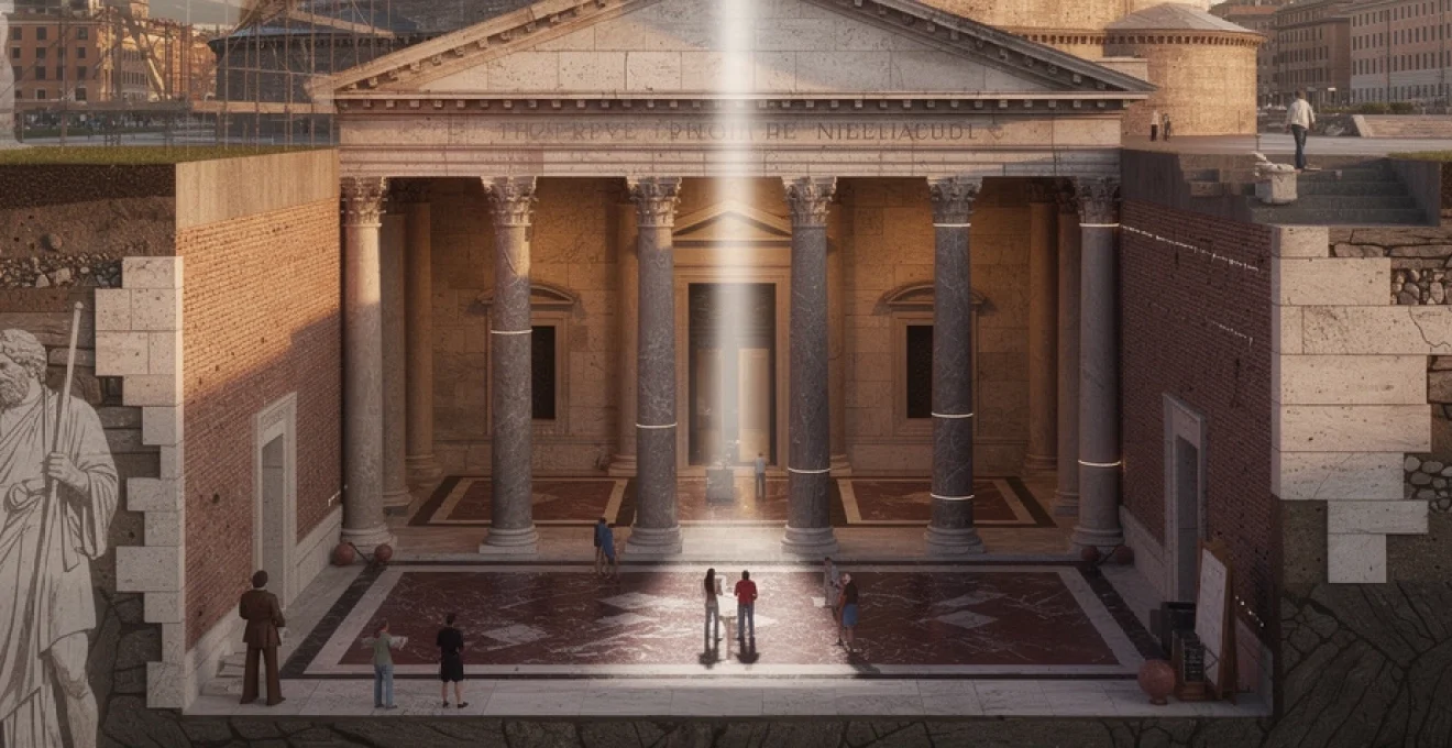 Le Panthéon de Rome défie le temps depuis près de deux millénaires, se dressant majestueusement sur la Piazza della Rotonda comme un témoignage vivant du génie architectural romain. Cette prouesse technique exceptionnelle continue d’émerveiller les architectes, ingénieurs et visiteurs du monde entier par son état de conservation remarquable. Contrairement à la plupart des monuments antiques qui ne subsistent qu’à l’état de ruines, ce temple dédié à tous les dieux conserve son intégrité structurelle originelle, défiant les lois de l’usure naturelle et les vicissitudes de l’histoire.