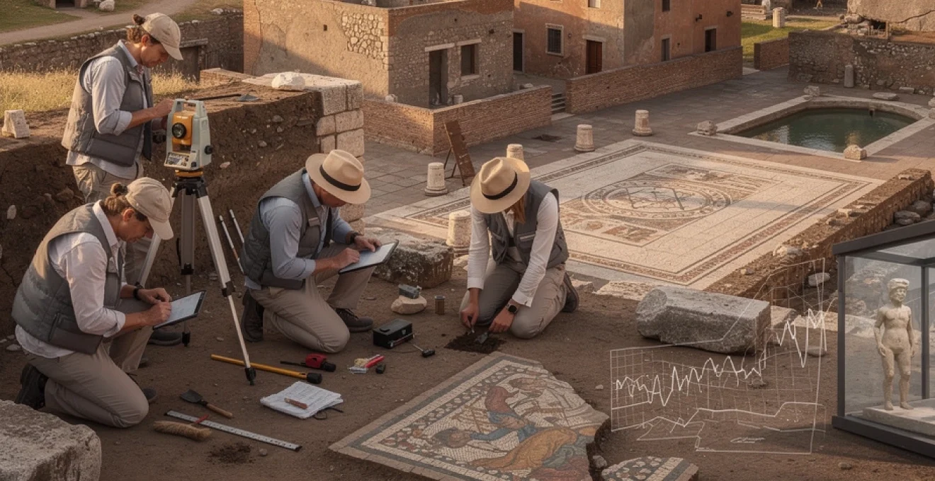 Le géoradar (GPR, Ground Penetrating Radar), de son côté, envoie des ondes électromagnétiques dans le sol et enregistre leur réflexion sur des structures enfouies. En Italie, il est largement utilisé sur les sites urbains – Rome, Naples, Vérone – où les fouilles doivent être limitées pour ne pas perturber la vie moderne. Grâce au géoradar, les archéologues peuvent cartographier des murs, des canalisations, des tombes ou des mosaïques avant même d’ouvrir un sondage, ce qui permet de cibler précisément les zones à explorer.